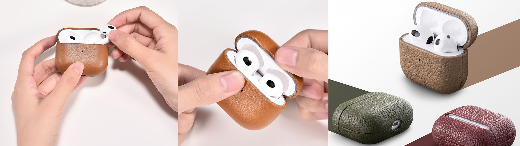 Made with 100% natural leather sourced from renowned ECCO tannery in Netherlands. Its also lined with soft microfiber interior to fit like a glove on your AirPods (3rd Generation) to provide protection against drops and everyday scratches. Order yours today and add a touch of sophistication while protecting your AirPods!